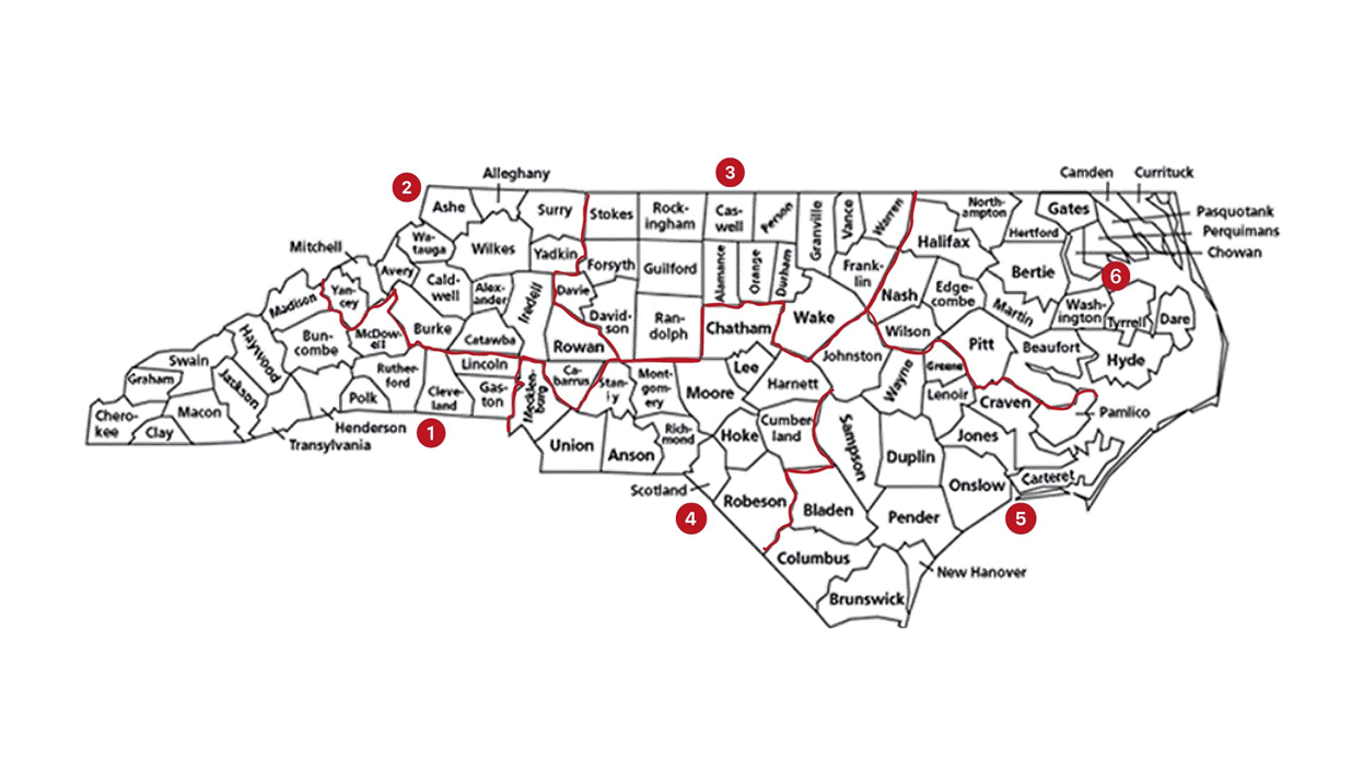 NCACCIA membership is comprised of vice presidents, deans, directors, and other instructional administrators from across the North Carolina Community College System's 58 colleges. Colleges are divided into 8 regions, which mirror the NC Association of Community College Trustees Regions. Those regions, which can be found below, are used to help organize our many members and to help ensure representation in association leadership and on various teams and work groups.